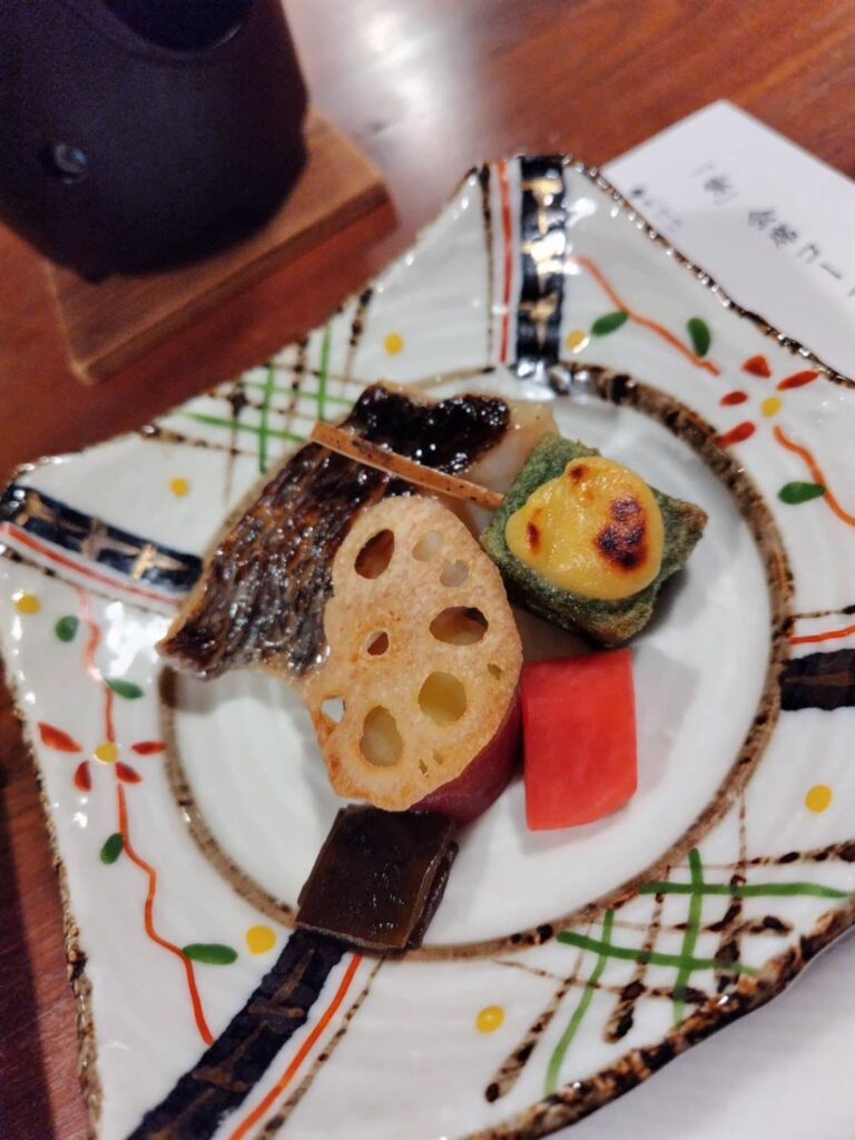 露天風呂でしっかり温まり、夜は「紫」会席コース。